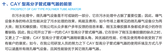 本單位代謝物是依照之地CJ/T264-2007《水妥善處理用膜聚氨酯材料膜微小孔水解酸化器》新政策范,引進技術化工廠教學科研企業的副作用,主產地出的最新一代名將CAY型高份子管式水解酸化器。